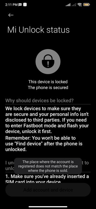 Xiaomi Phone unlock requirements and procedure