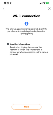 Canon Camera Connect for iOS requests location permission in order to display the name of the Wi-Fi network (SSID) when connecting to a camera. The app displays the message: "Location information required to display the name of the network to which this smartphone is connected when connecting to the camera via Wi-Fi."[5]